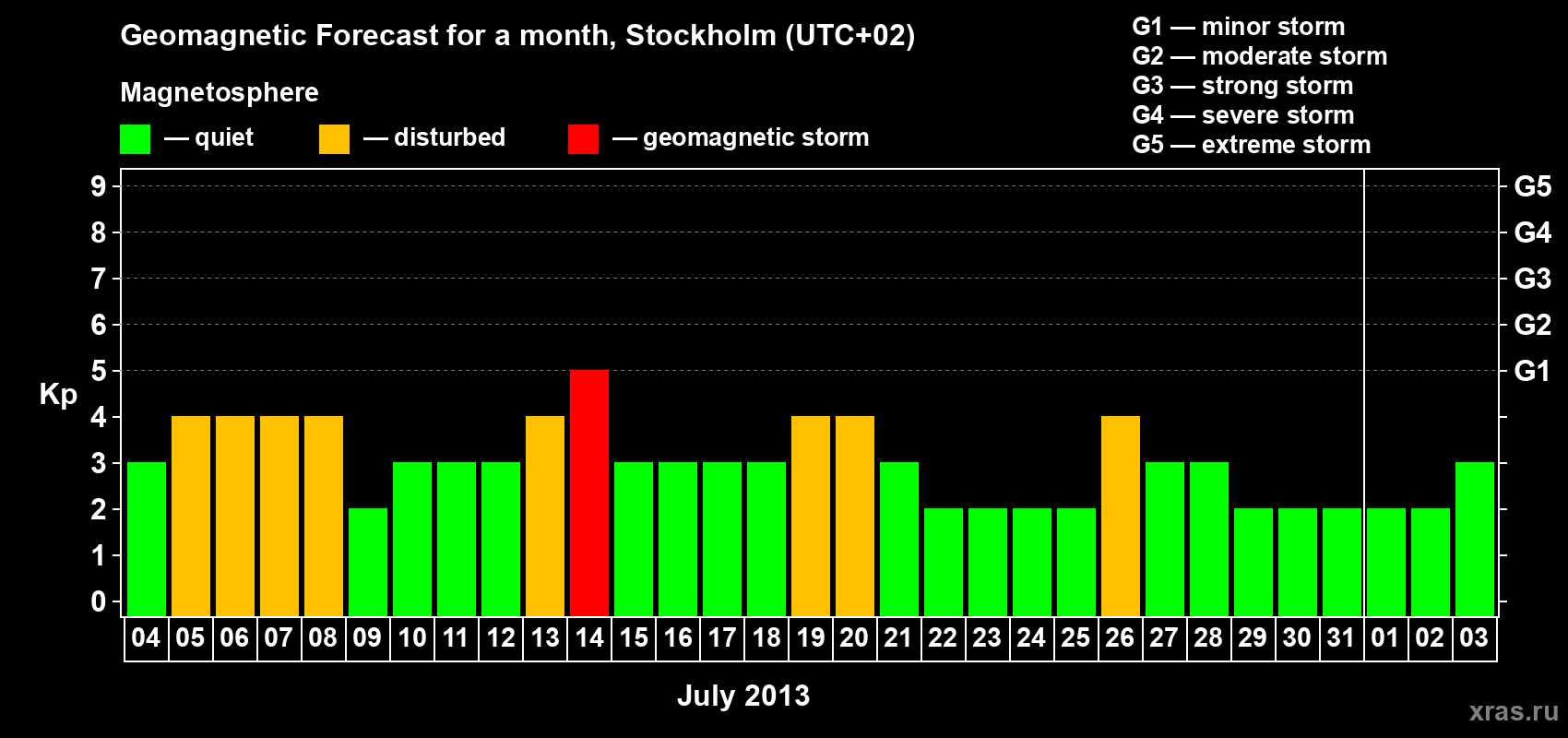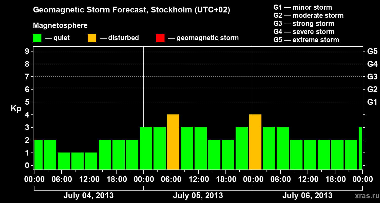 Geomagnetic storm forecast in Stockholm for Jul 04, 2013