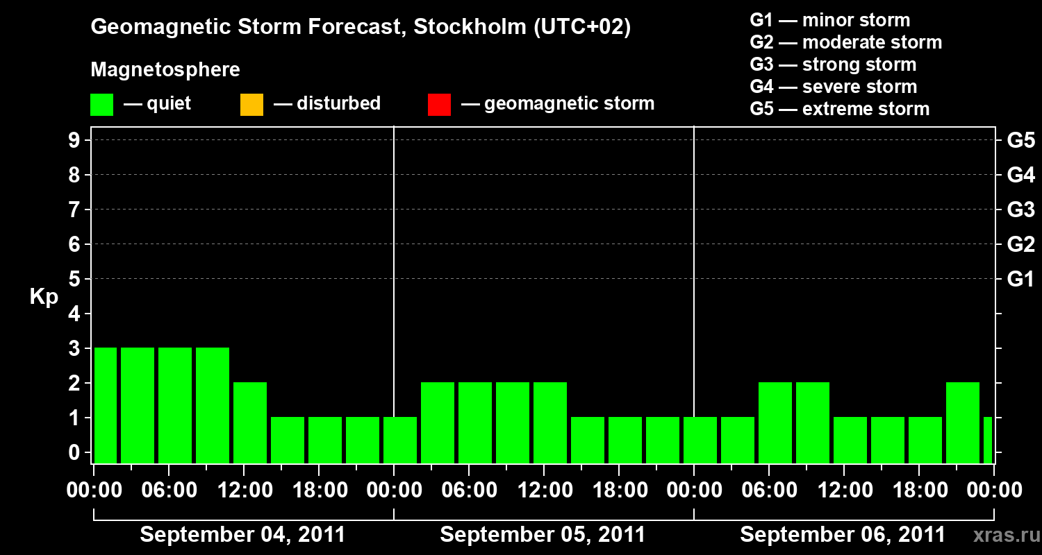 Geomagnetic storm forecast in Stockholm for Sep 04, 2011