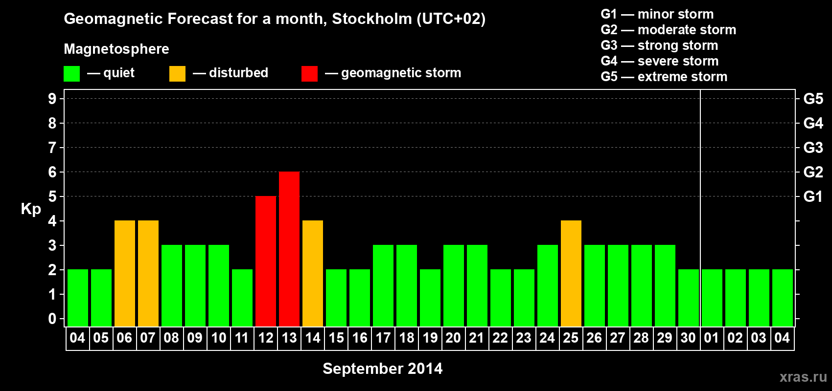 Geomagnetic storm forecast in Stockholm for Sep 04, 2014