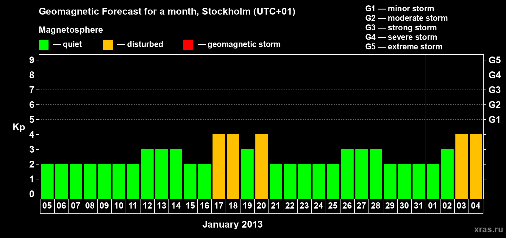 Geomagnetic storm forecast in Stockholm for Jan 05, 2013