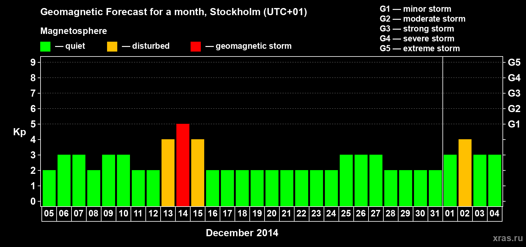 Geomagnetic storm forecast in Stockholm for Dec 05, 2013