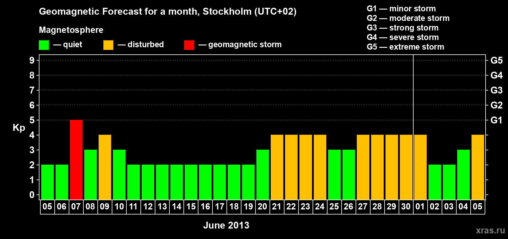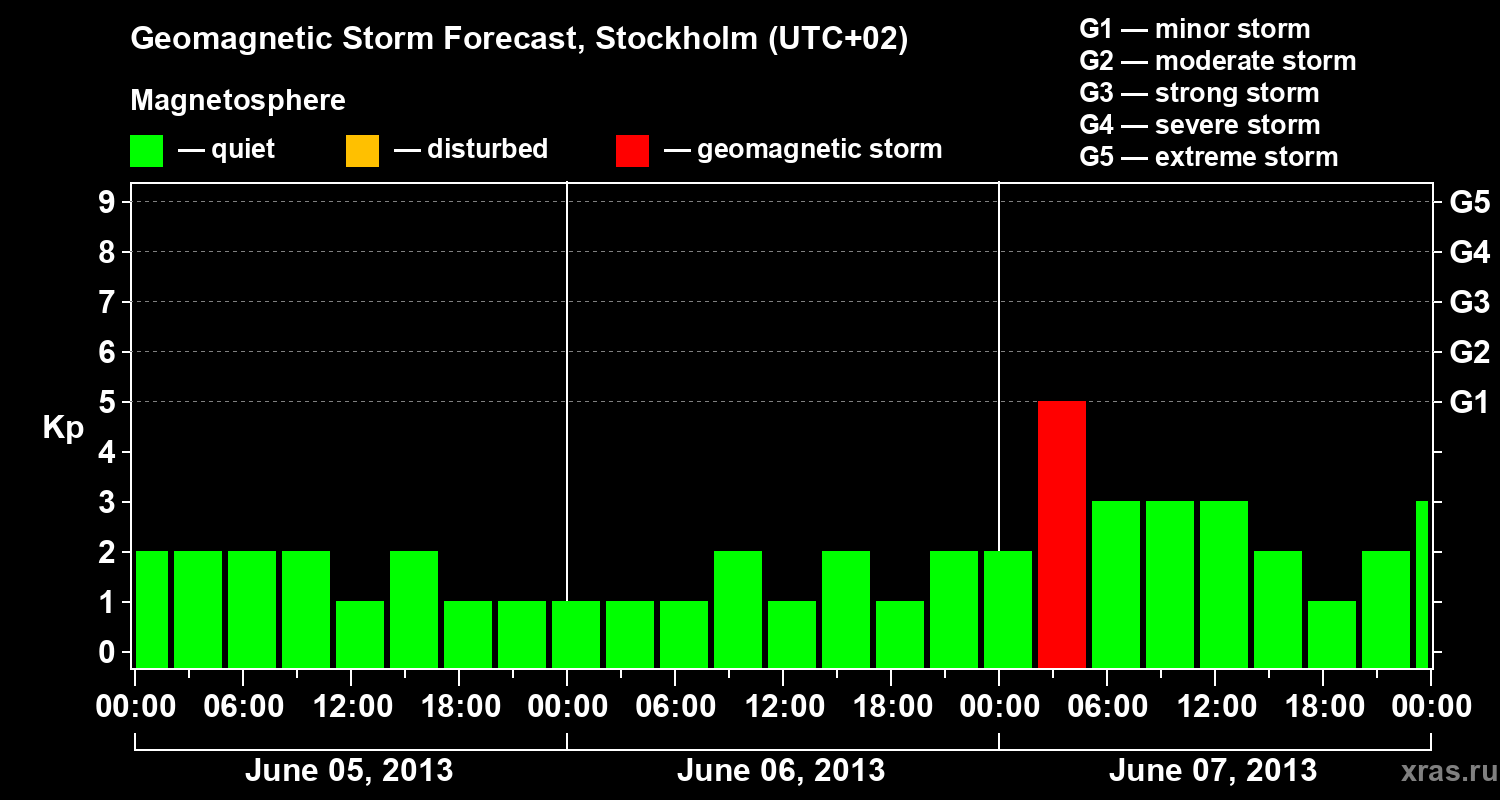 Geomagnetic storm forecast in Stockholm for Jun 05, 2013