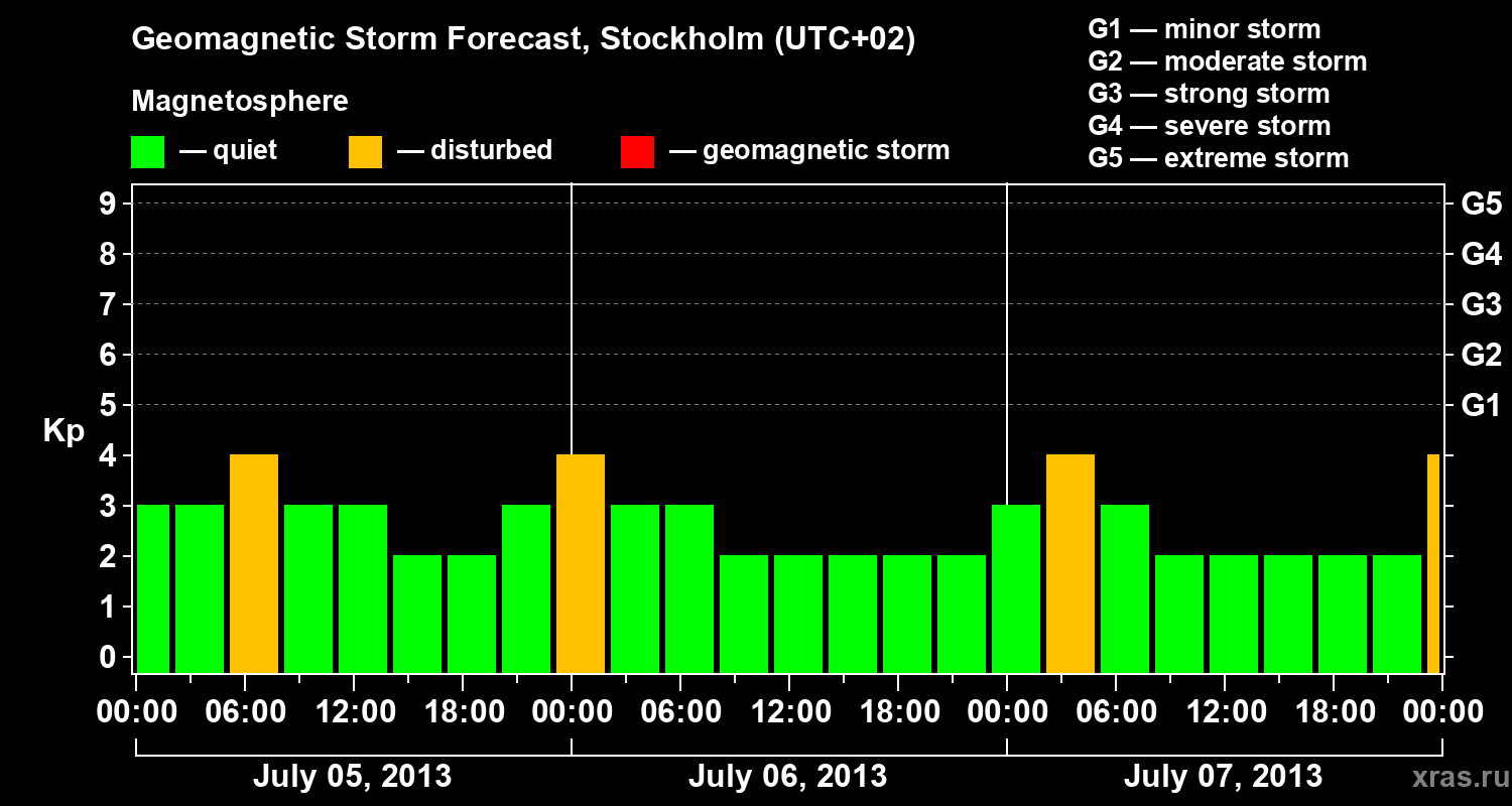 Geomagnetic storm forecast in Stockholm for Jul 05, 2013