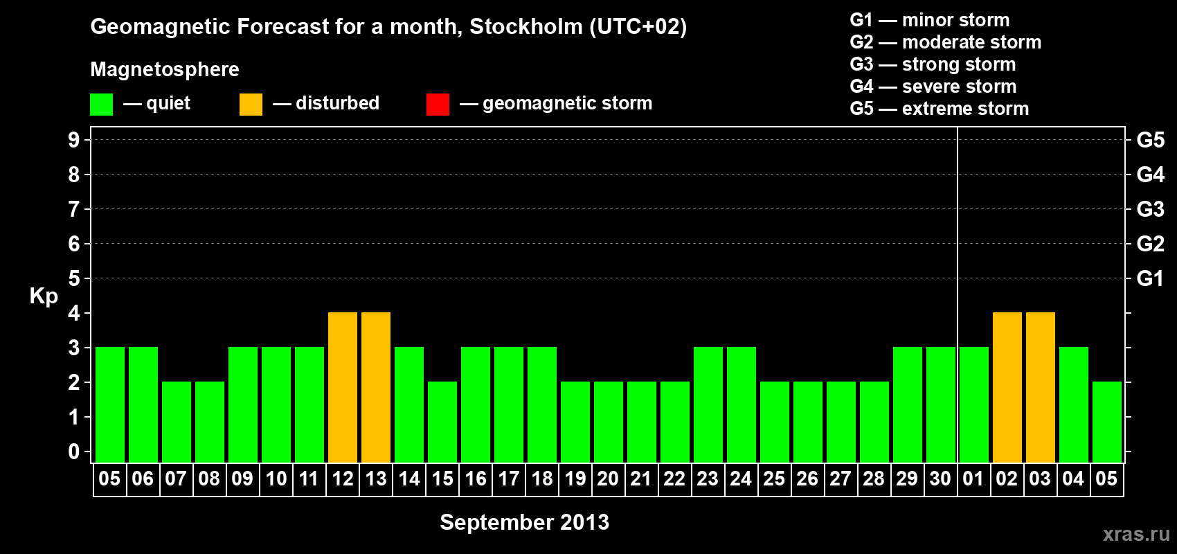 Geomagnetic storm forecast in Stockholm for Sep 05, 2013