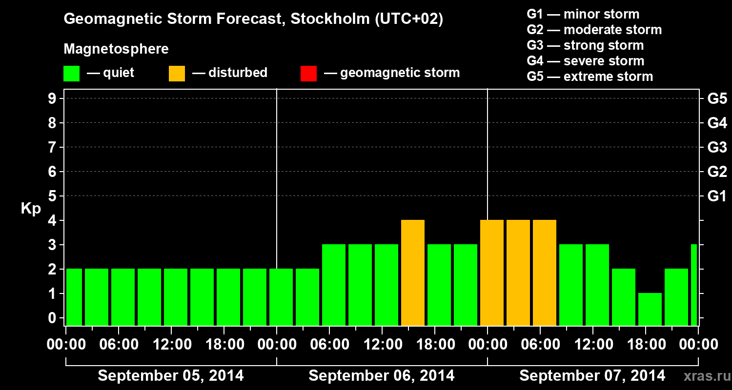 Geomagnetic storm forecast in Stockholm for Sep 05, 2014