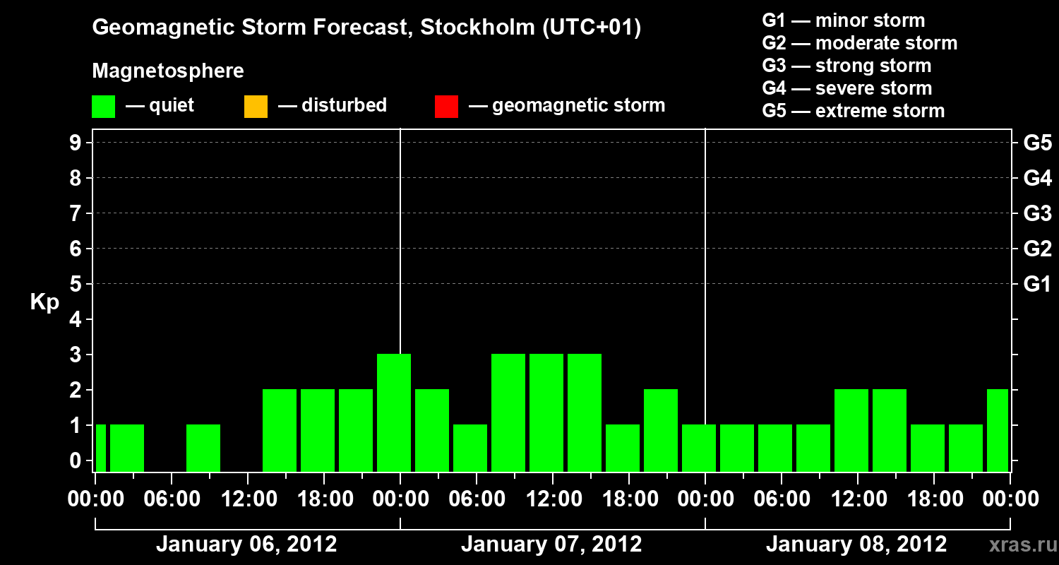 Geomagnetic storm forecast in Stockholm for Jan 06, 2012