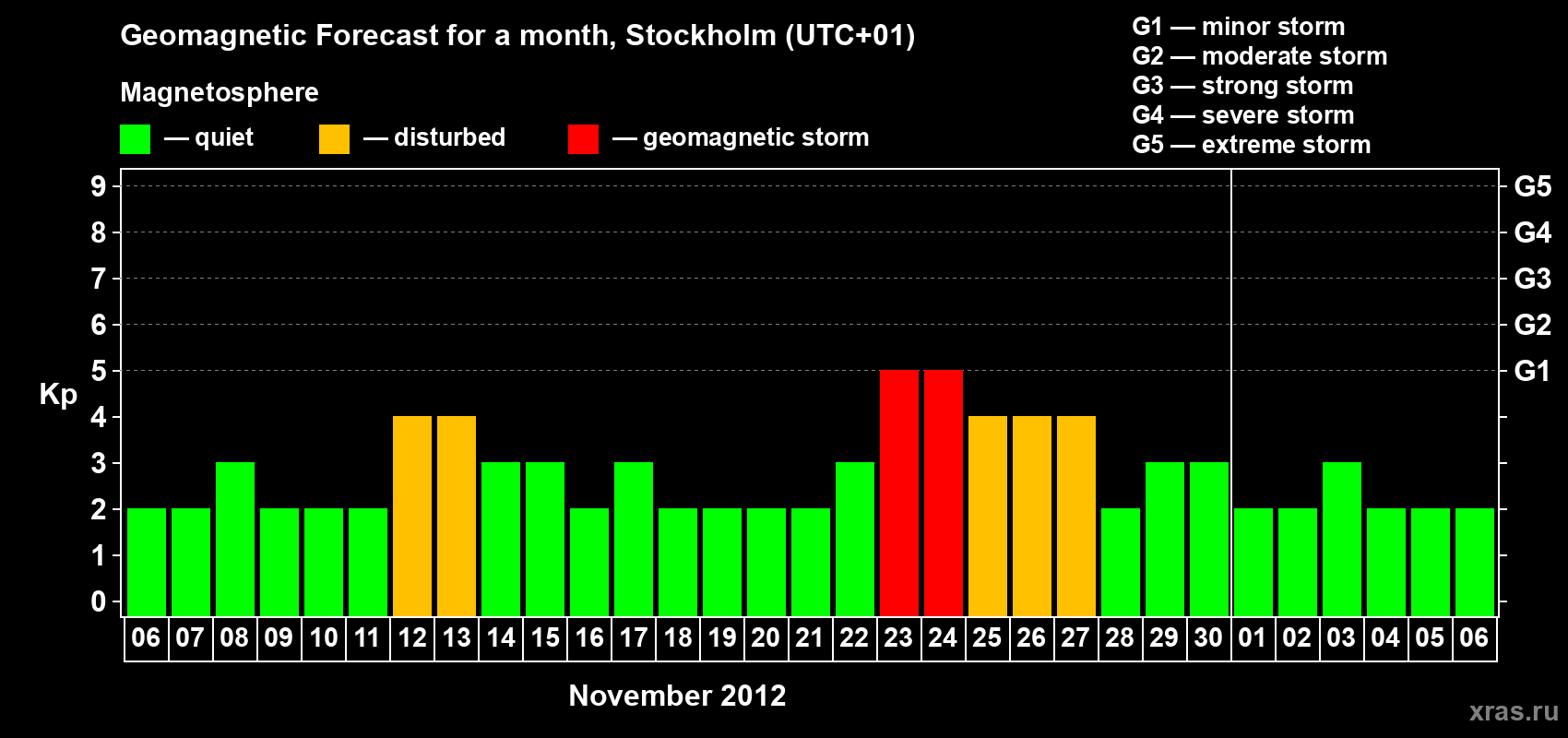Geomagnetic storm forecast in Stockholm for Nov 06, 2012