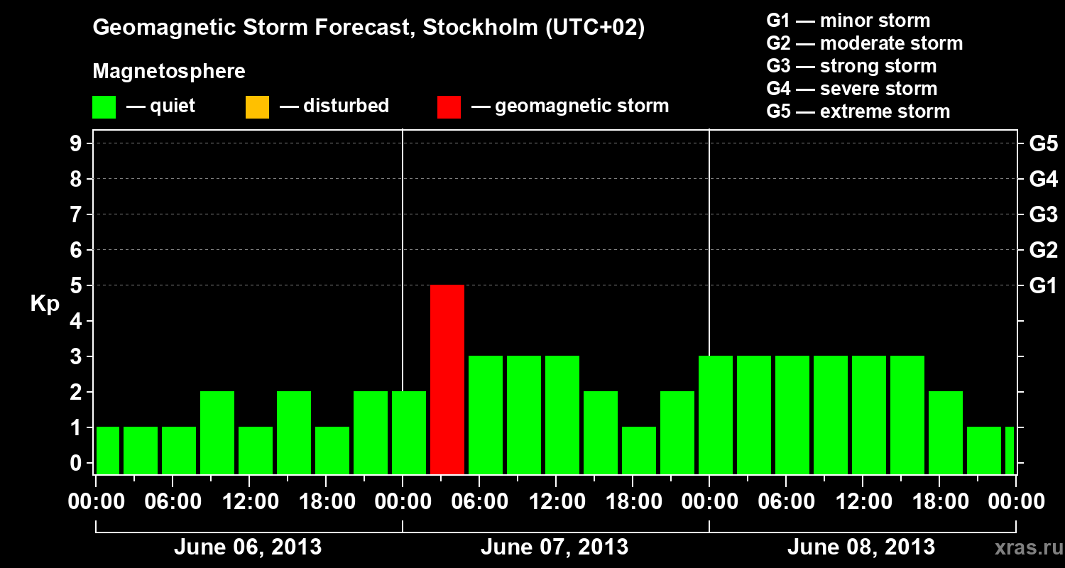 Geomagnetic storm forecast in Stockholm for Jun 06, 2013