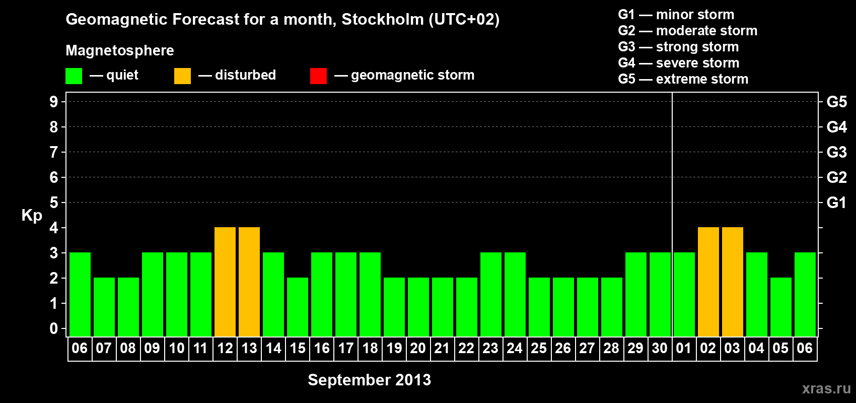 Geomagnetic storm forecast in Stockholm for Sep 06, 2013