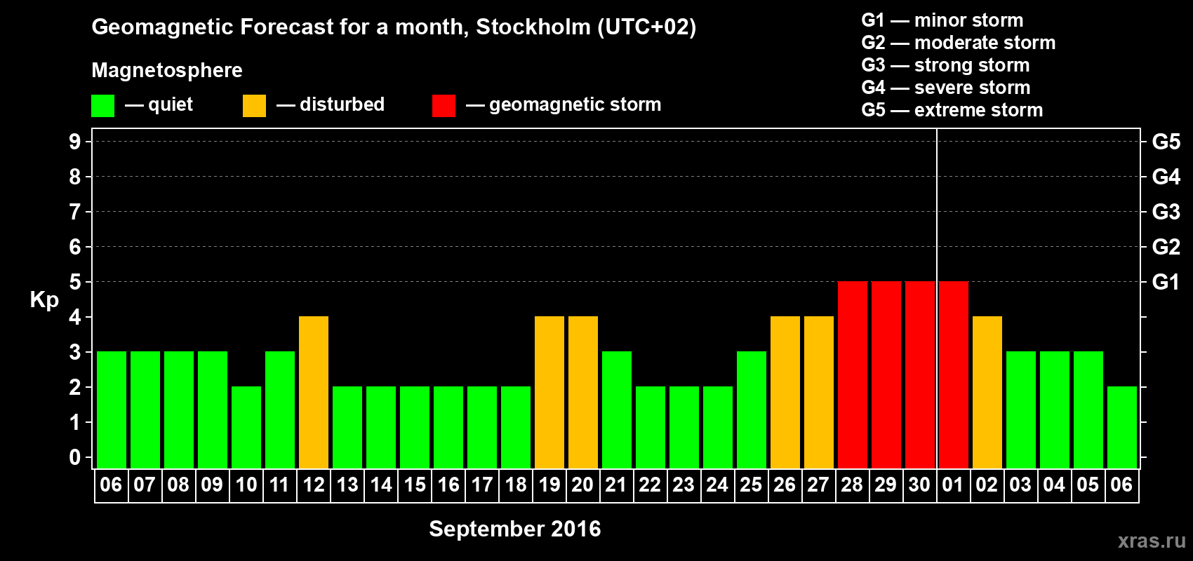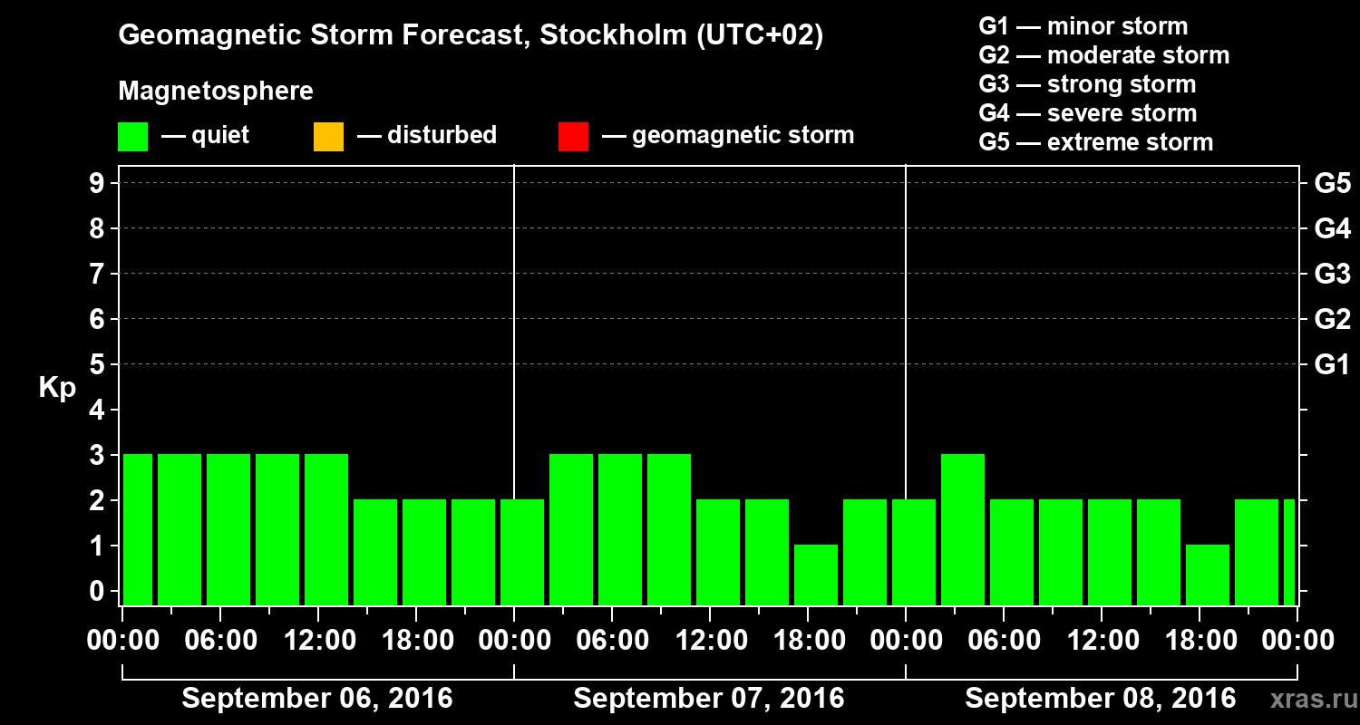 Geomagnetic storm forecast in Stockholm for Sep 06, 2016