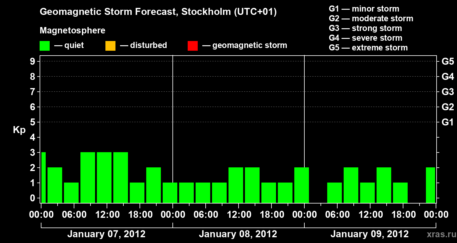 Geomagnetic storm forecast in Stockholm for Jan 07, 2012