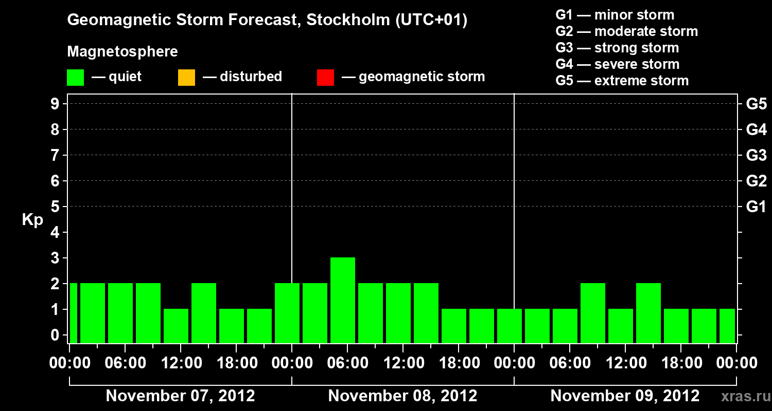 Geomagnetic storm forecast in Stockholm for Nov 07, 2012