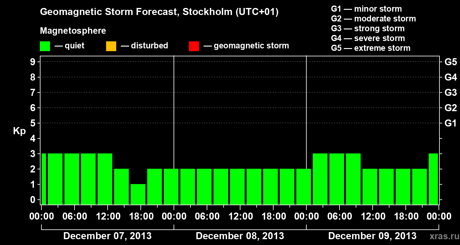 Geomagnetic storm forecast in Stockholm for Dec 07, 2013