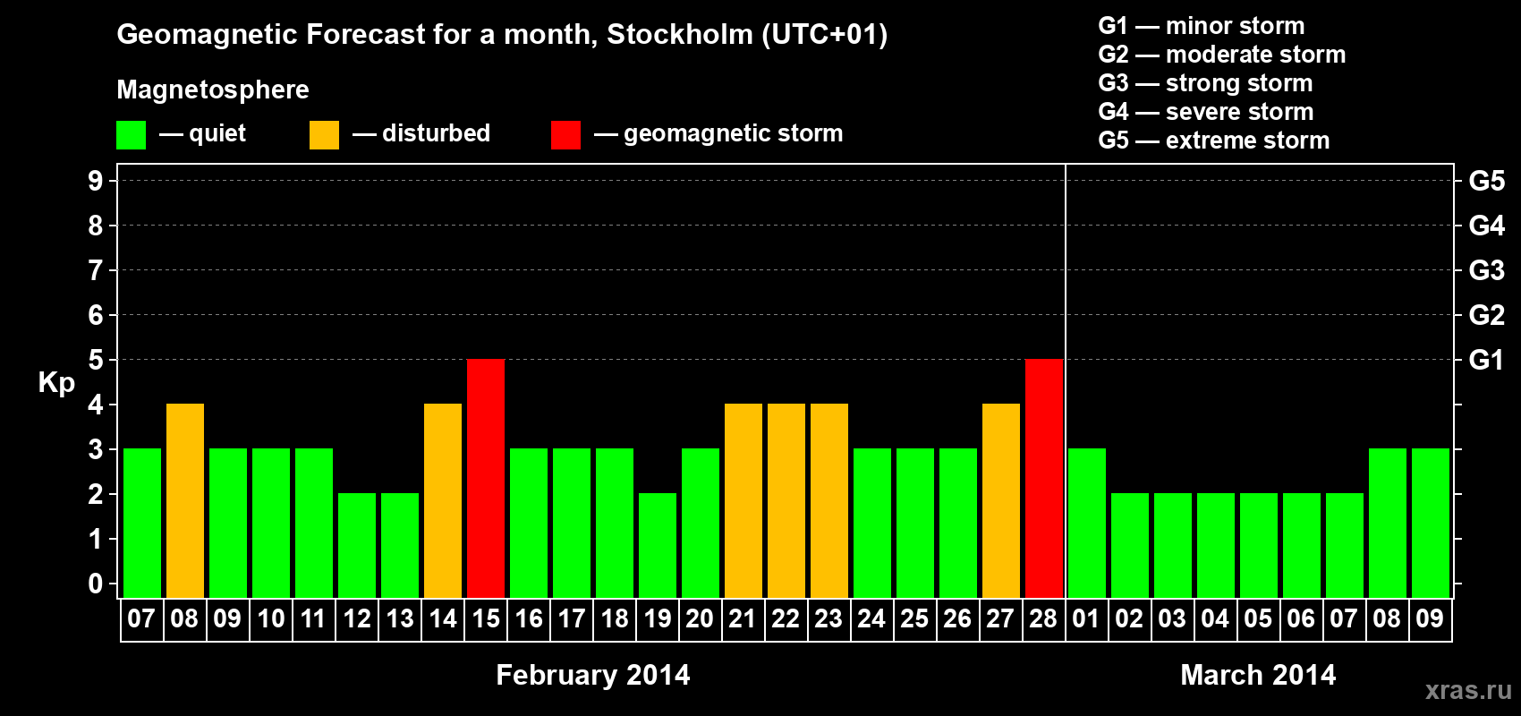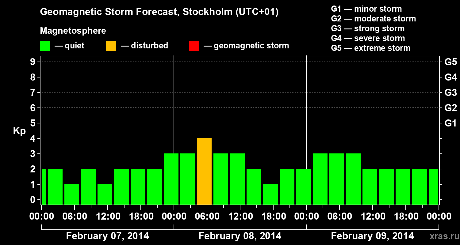 Geomagnetic storm forecast in Stockholm for Feb 07, 2014