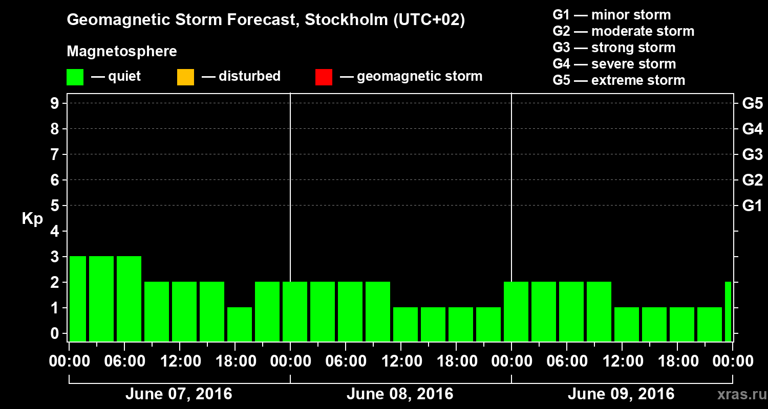 Geomagnetic storm forecast in Stockholm for Jun 07, 2016
