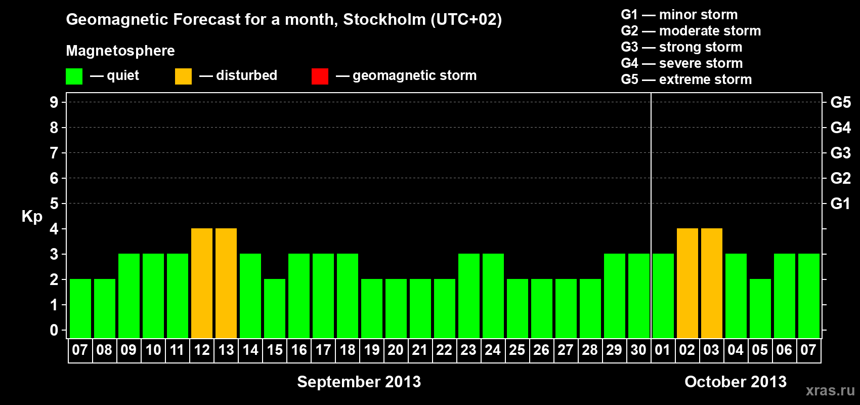 Geomagnetic storm forecast in Stockholm for Sep 07, 2013