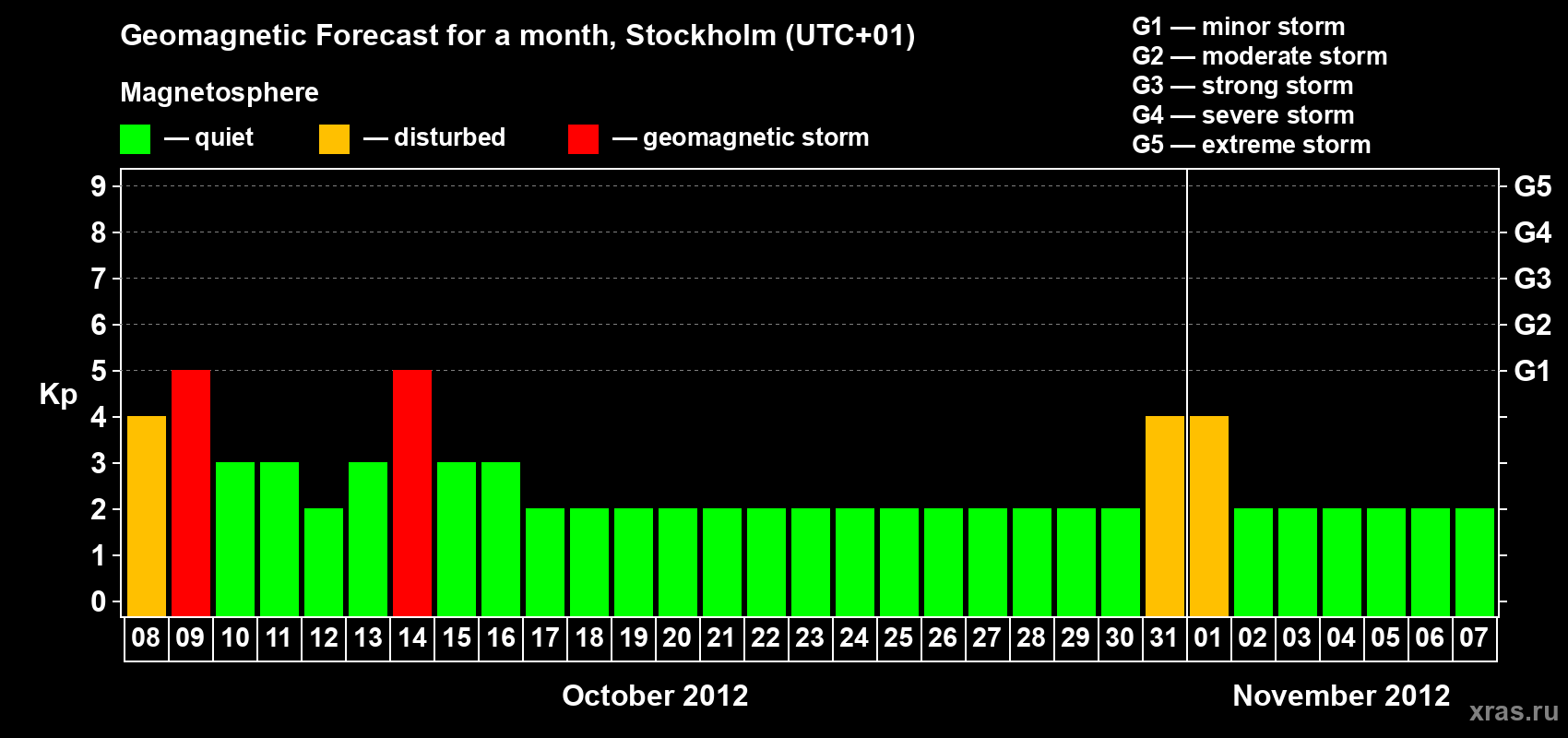 Geomagnetic storm forecast in Stockholm for Oct 08, 2012