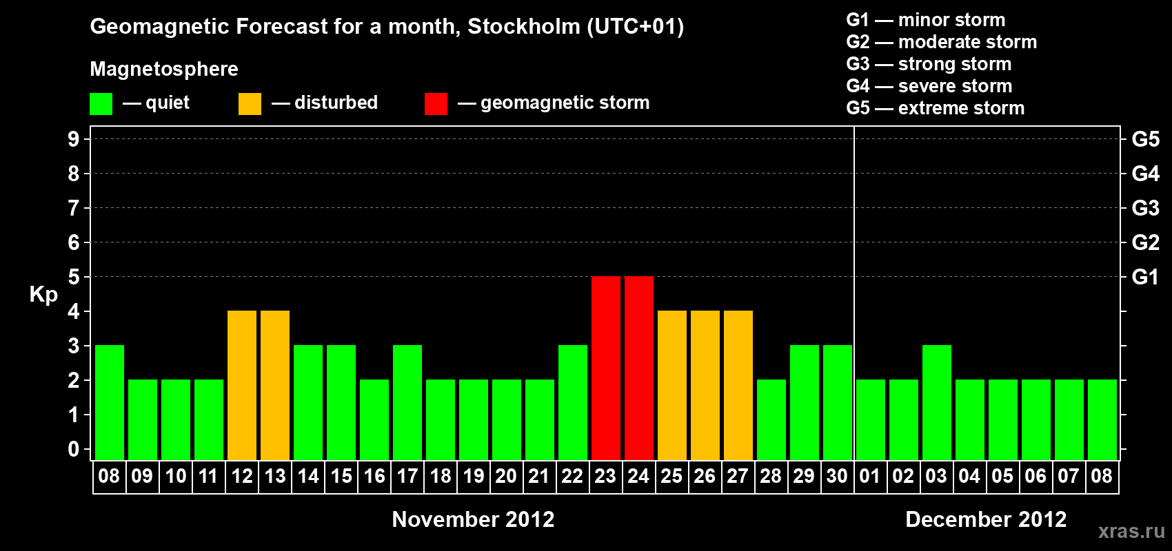 Geomagnetic storm forecast in Stockholm for Nov 08, 2012