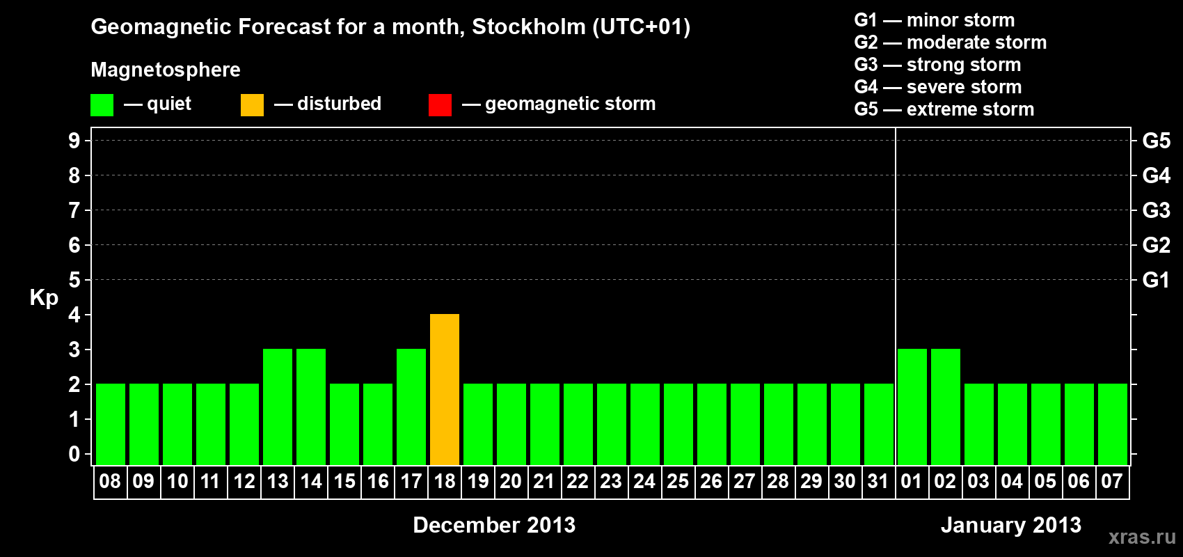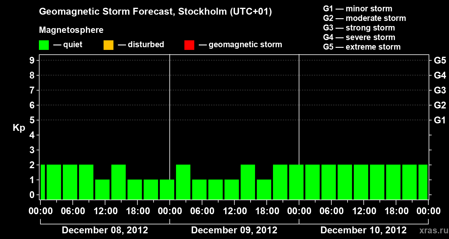 Geomagnetic storm forecast in Stockholm for Dec 08, 2012