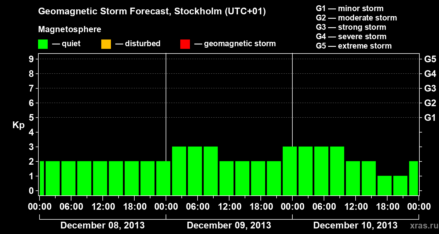 Geomagnetic storm forecast in Stockholm for Dec 08, 2013