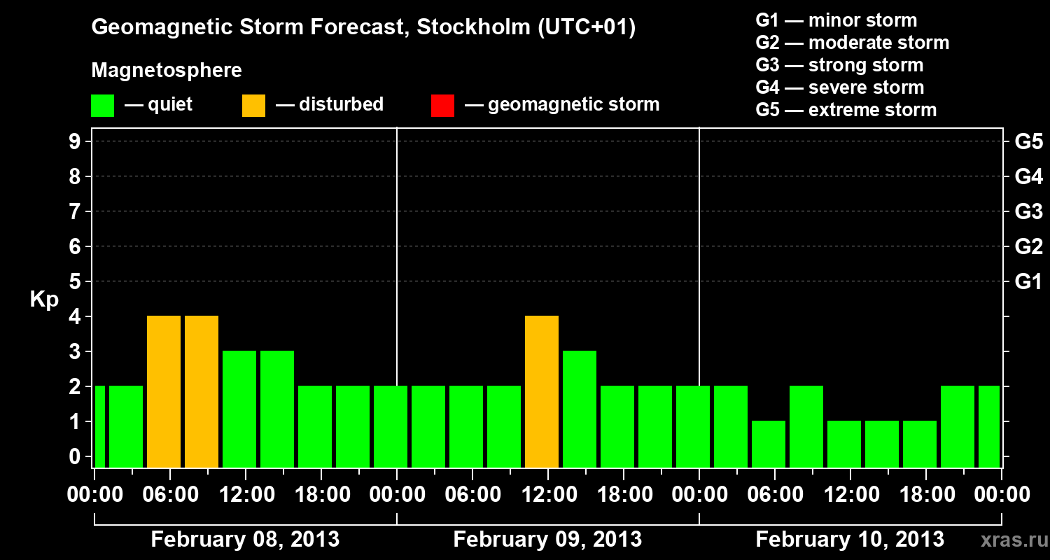 Geomagnetic storm forecast in Stockholm for Feb 08, 2013