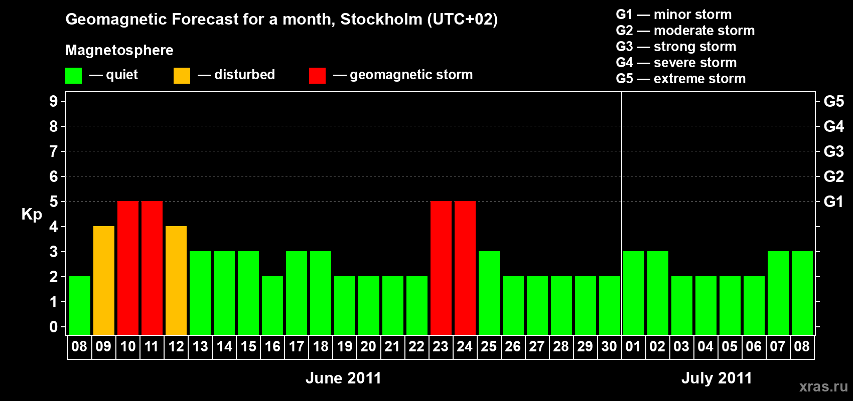 Geomagnetic storm forecast in Stockholm for Jun 08, 2011