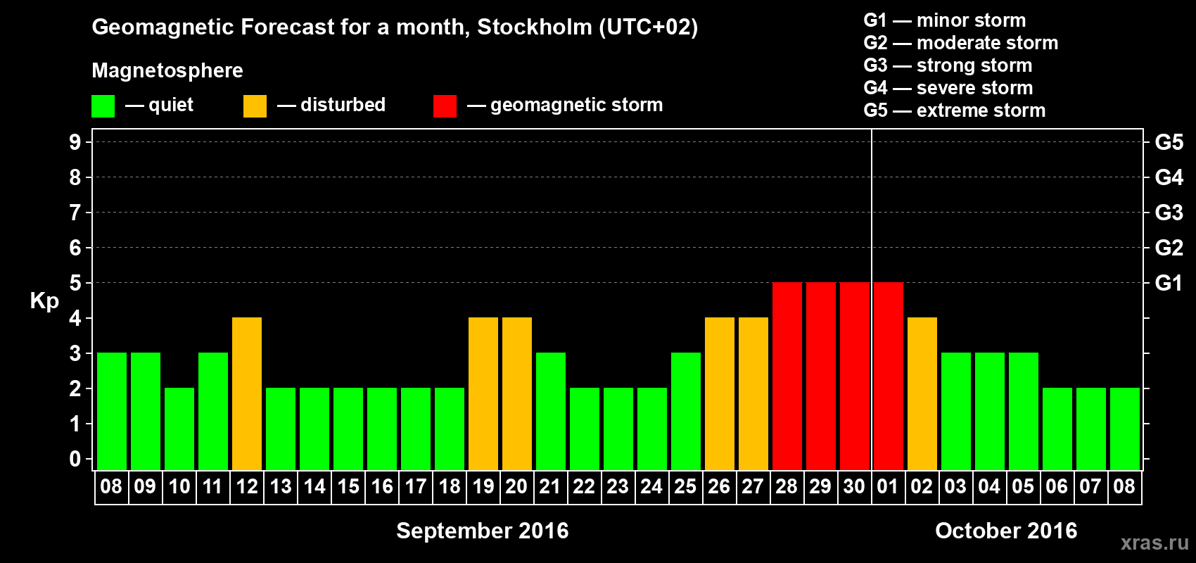 Geomagnetic storm forecast in Stockholm for Sep 08, 2016