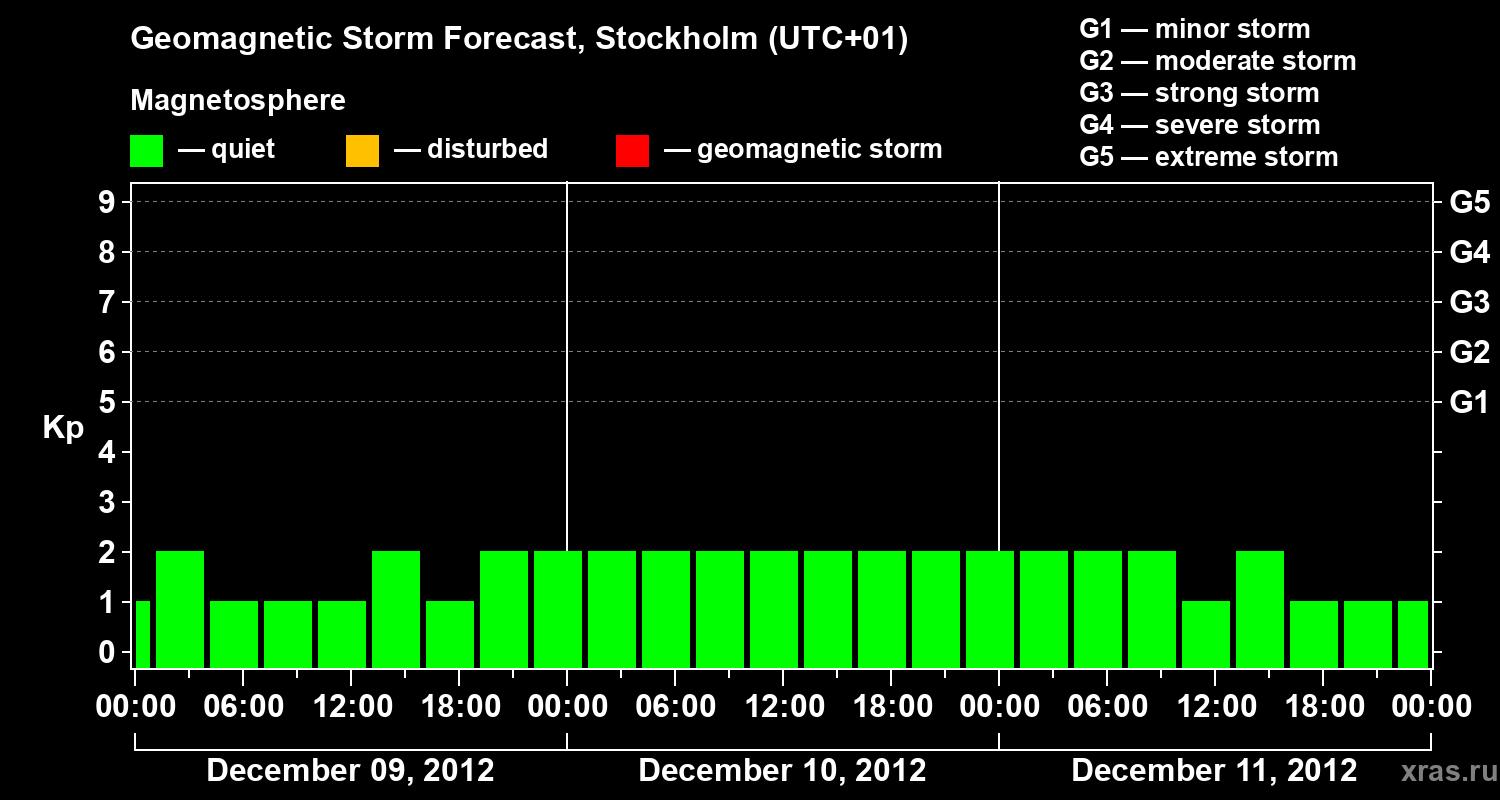 Geomagnetic storm forecast in Stockholm for Dec 09, 2012