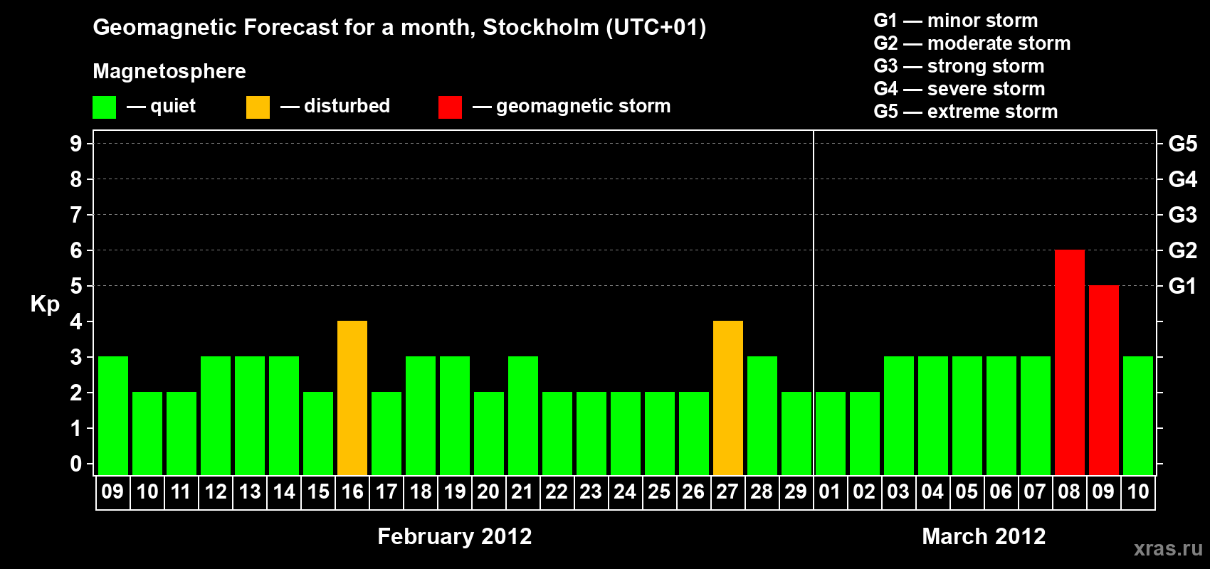 Geomagnetic storm forecast in Stockholm for Feb 09, 2012