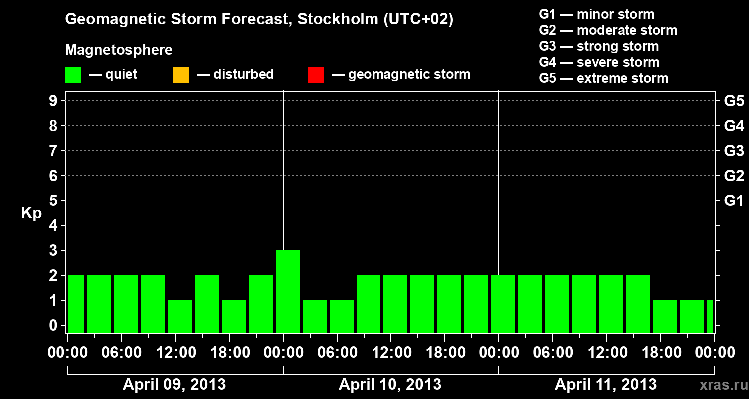 Geomagnetic storm forecast in Stockholm for Apr 09, 2013