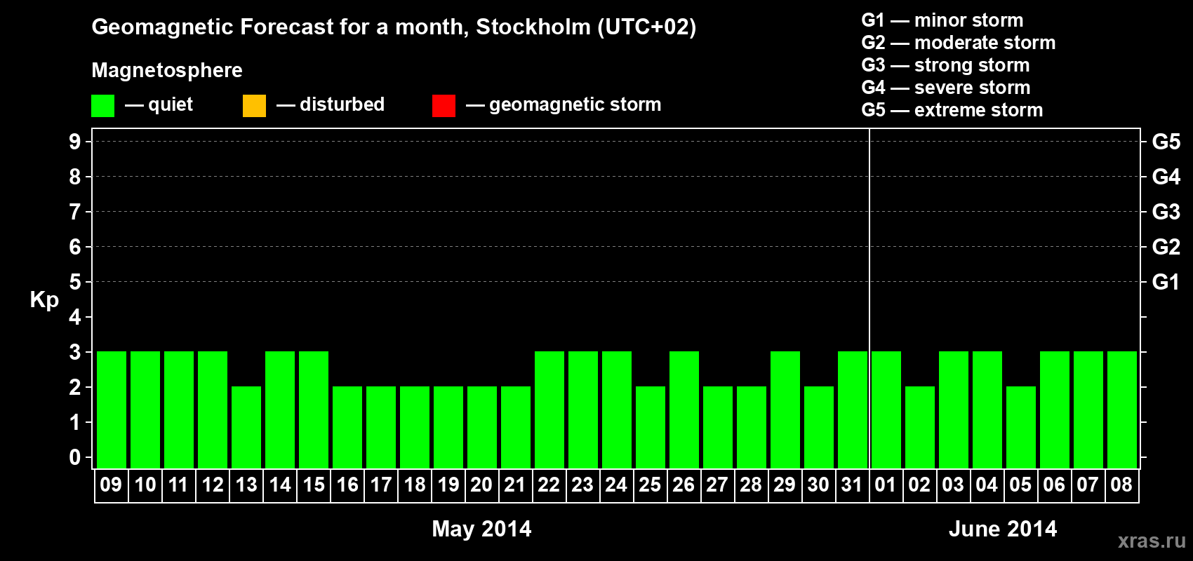 Geomagnetic storm forecast in Stockholm for May 09, 2014