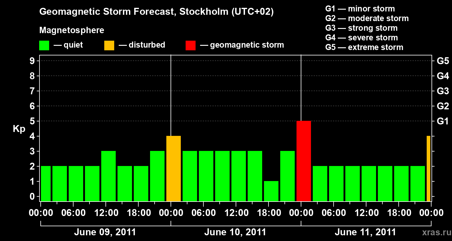Geomagnetic storm forecast in Stockholm for Jun 09, 2011