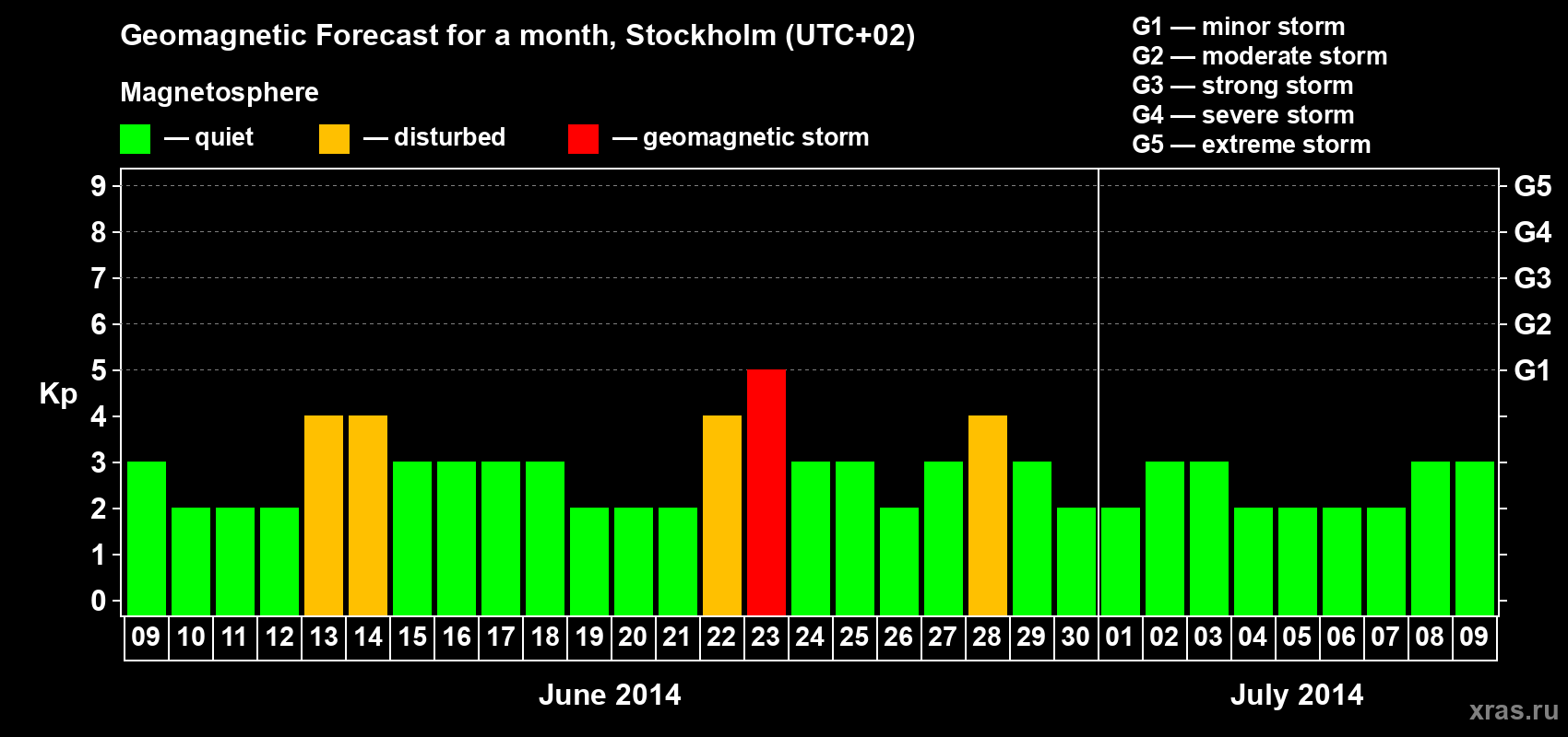Geomagnetic storm forecast in Stockholm for Jun 09, 2014