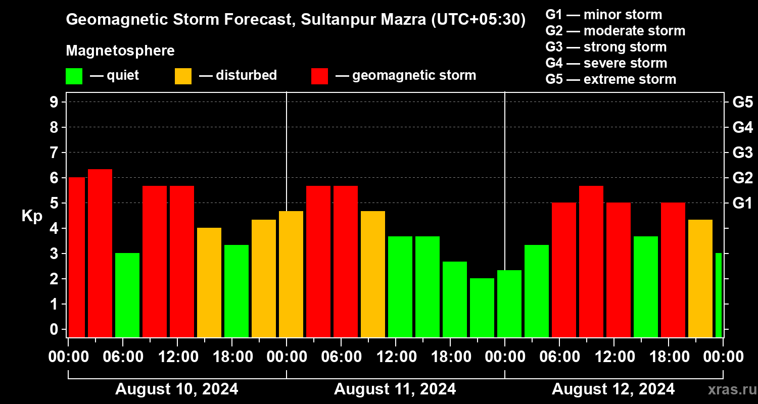 Geomagnetic storm forecast in Sultanpur Mazra for Aug 10, 2024