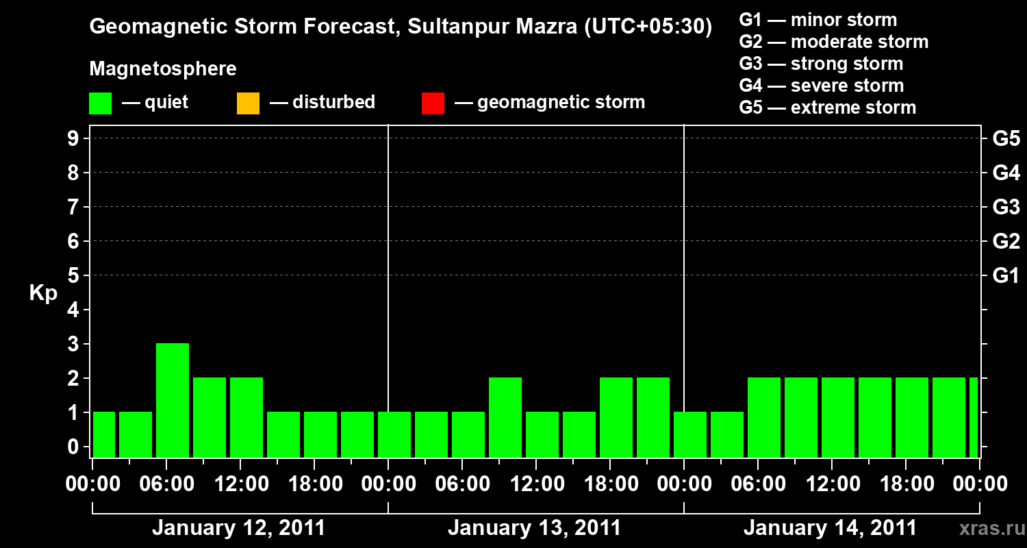 Geomagnetic storm forecast in Sultanpur Mazra for Jan 12, 2011