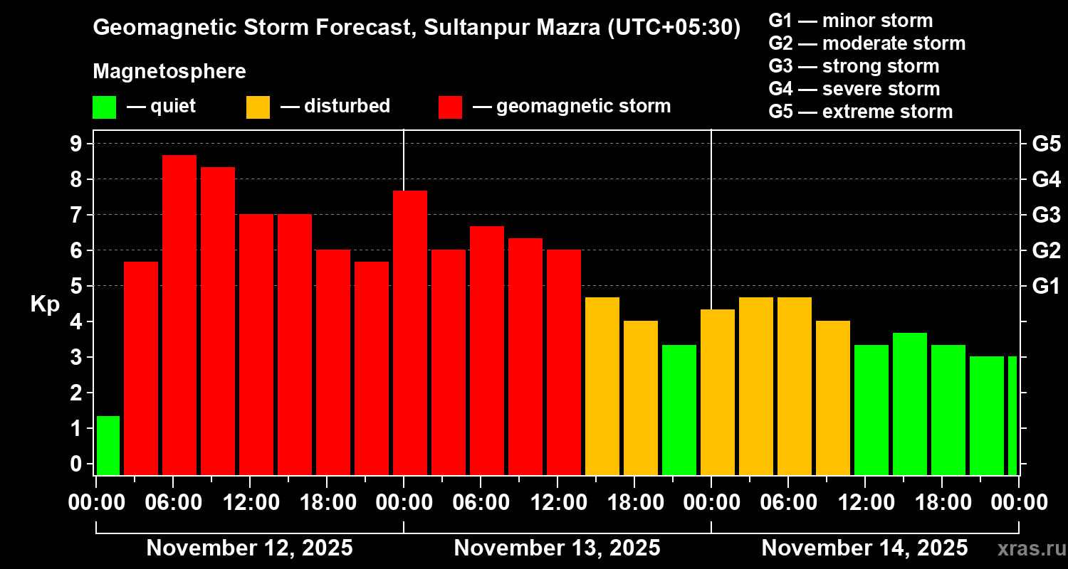 Geomagnetic storm forecast in Sultanpur Mazra for Nov 12, 2025