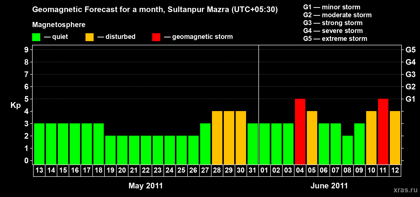 Geomagnetic storm forecast in Sultanpur Mazra for May 13, 2011