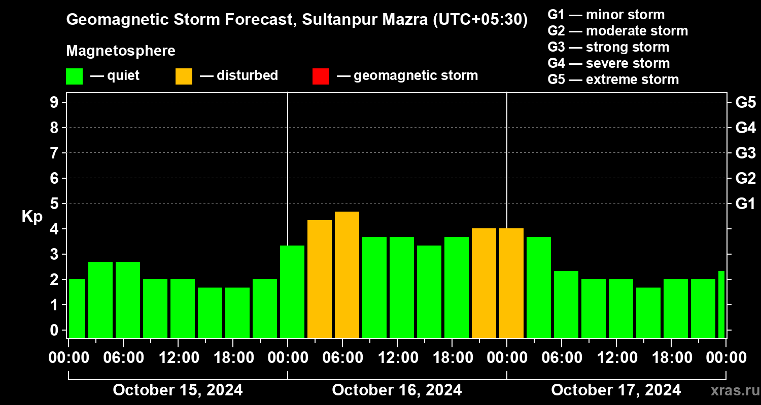 Geomagnetic storm forecast in Sultanpur Mazra for Oct 15, 2024