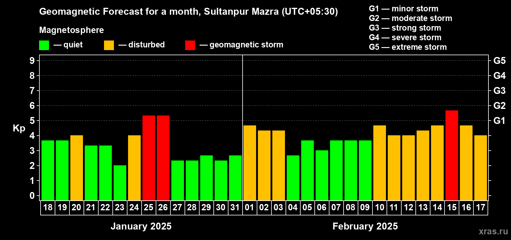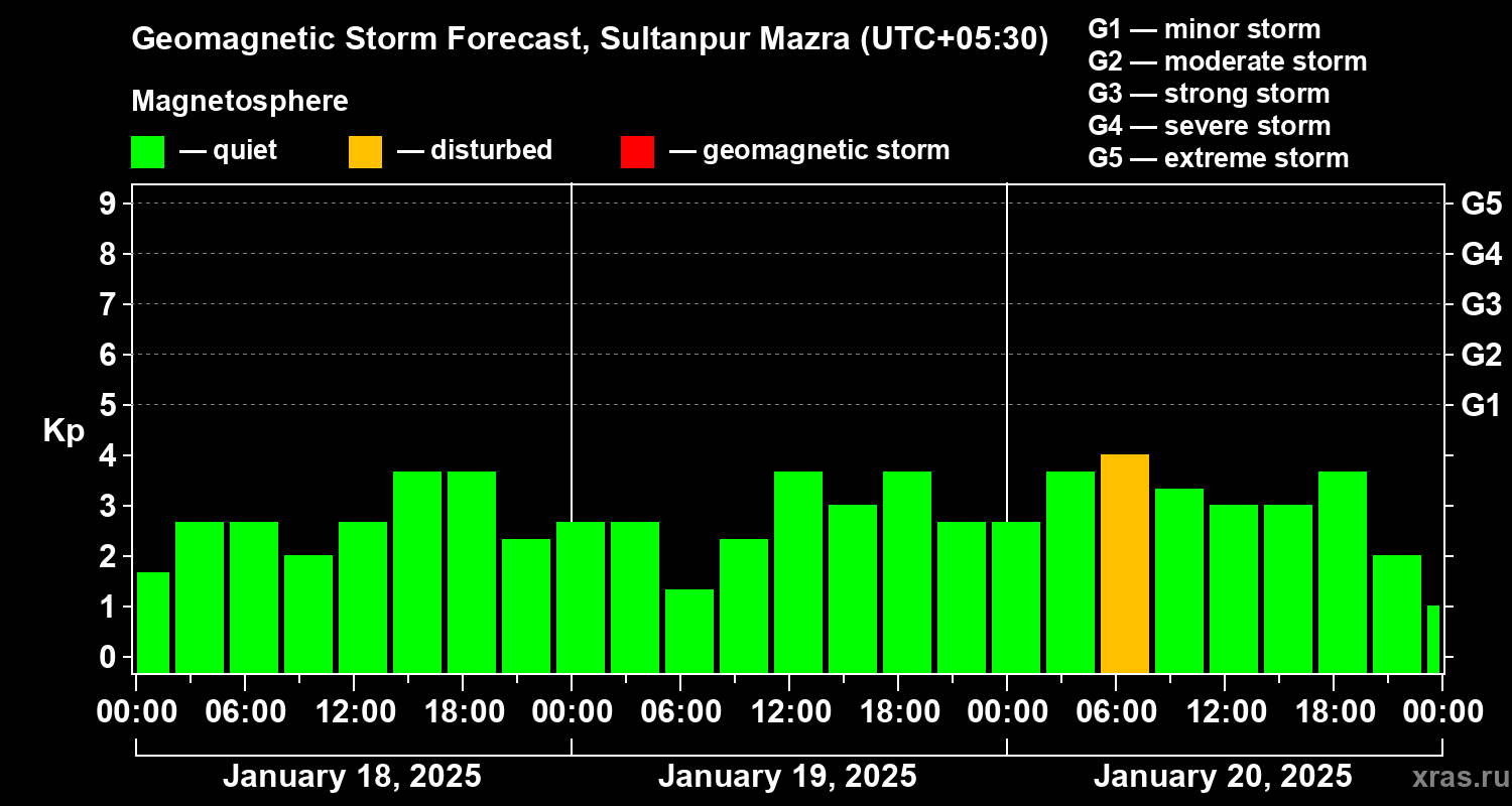 Geomagnetic storm forecast in Sultanpur Mazra for Jan 18, 2025