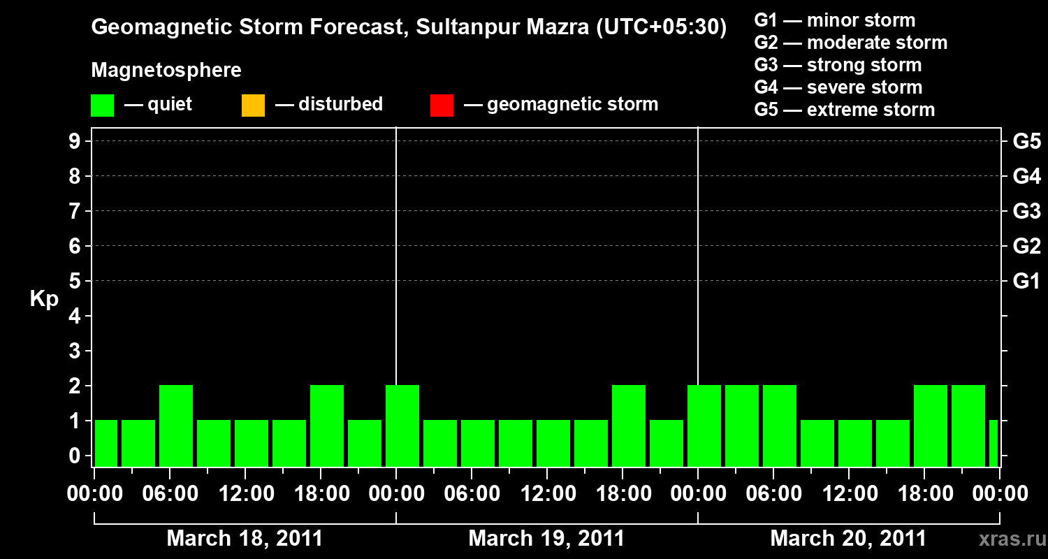 Geomagnetic storm forecast in Sultanpur Mazra for Mar 18, 2011