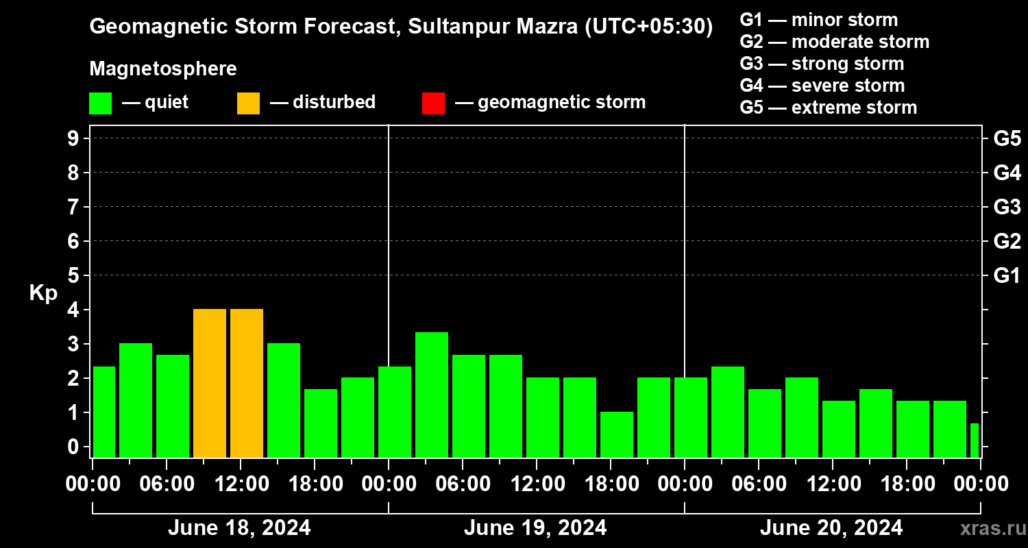 Geomagnetic storm forecast in Sultanpur Mazra for Jun 18, 2024