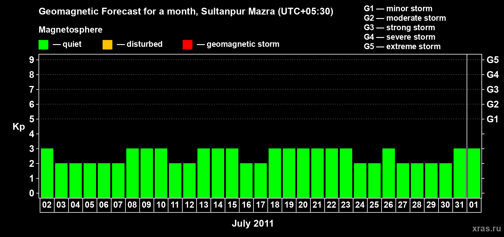 Geomagnetic storm forecast in Sultanpur Mazra for Jul 02, 2011