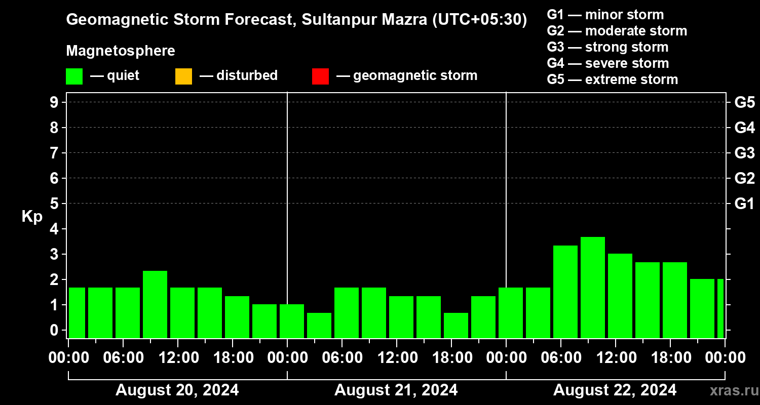 Geomagnetic storm forecast in Sultanpur Mazra for Aug 20, 2024