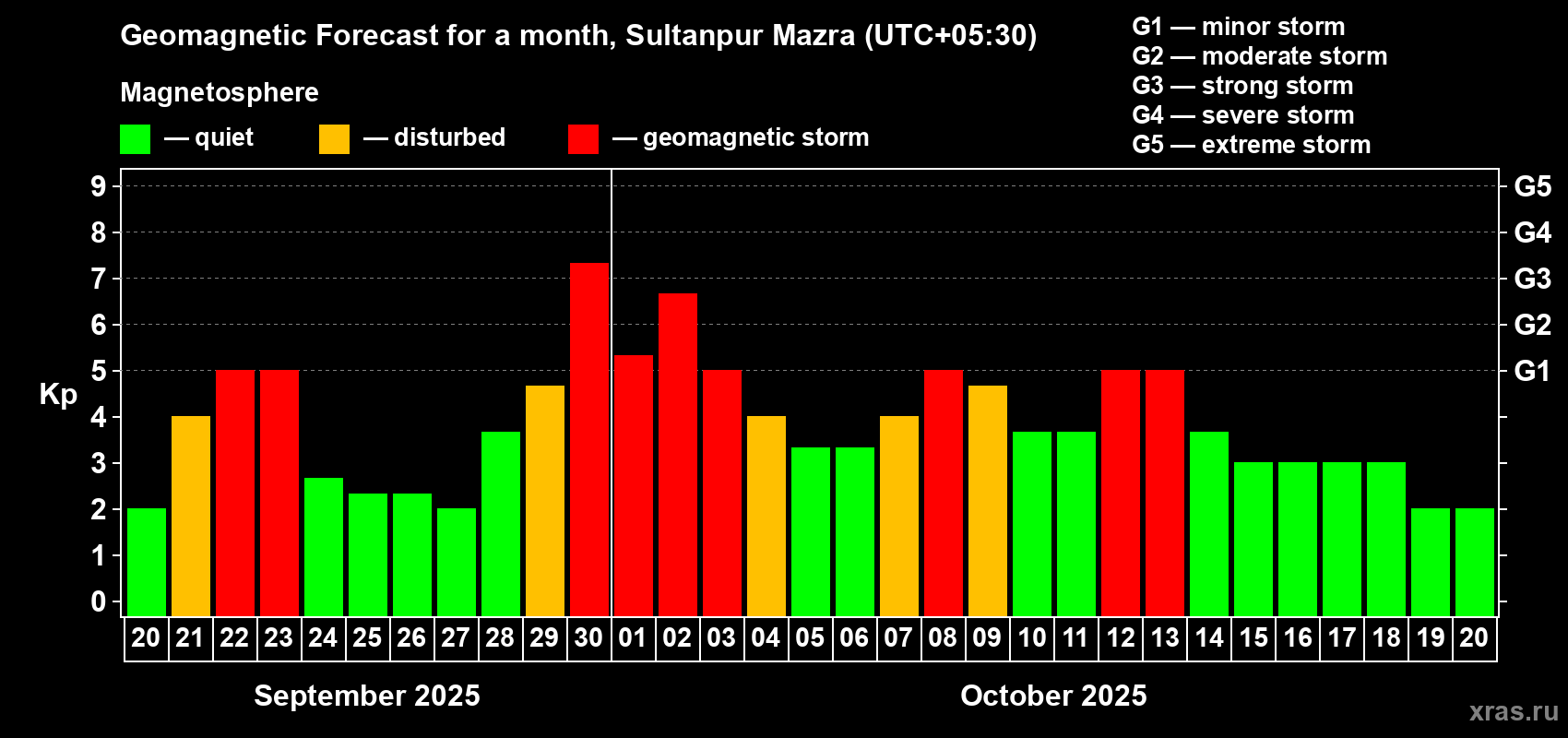 Geomagnetic storm forecast in Sultanpur Mazra for Sep 20, 2025