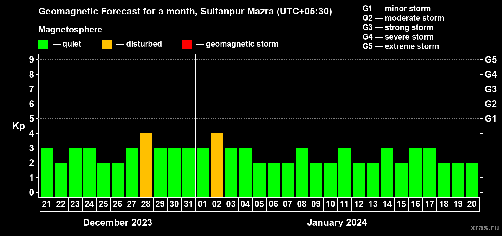 Geomagnetic storm forecast in Sultanpur Mazra for Dec 21, 2023