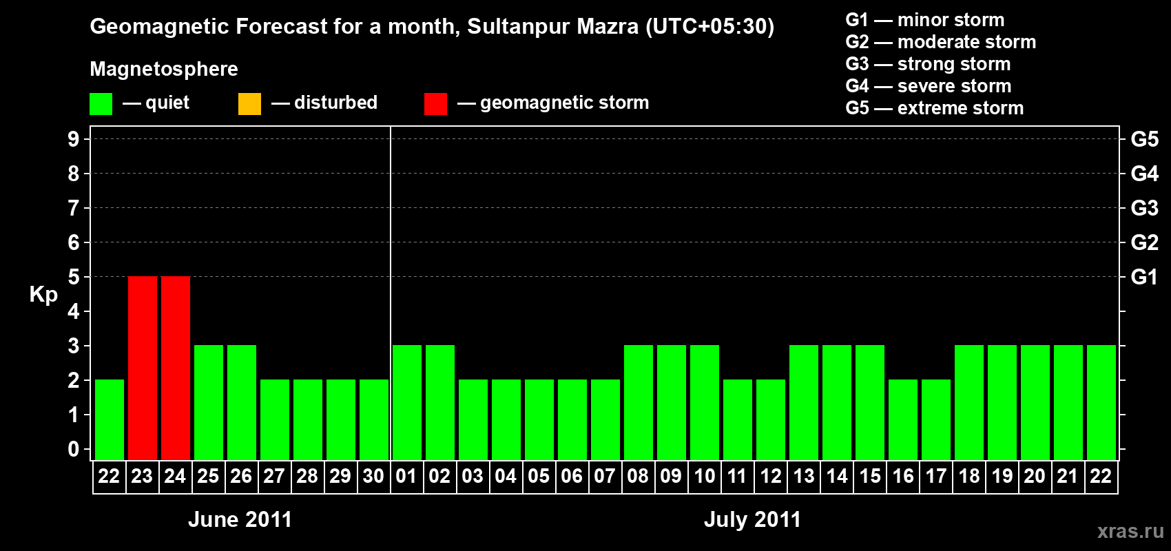 Geomagnetic storm forecast in Sultanpur Mazra for Jun 22, 2011