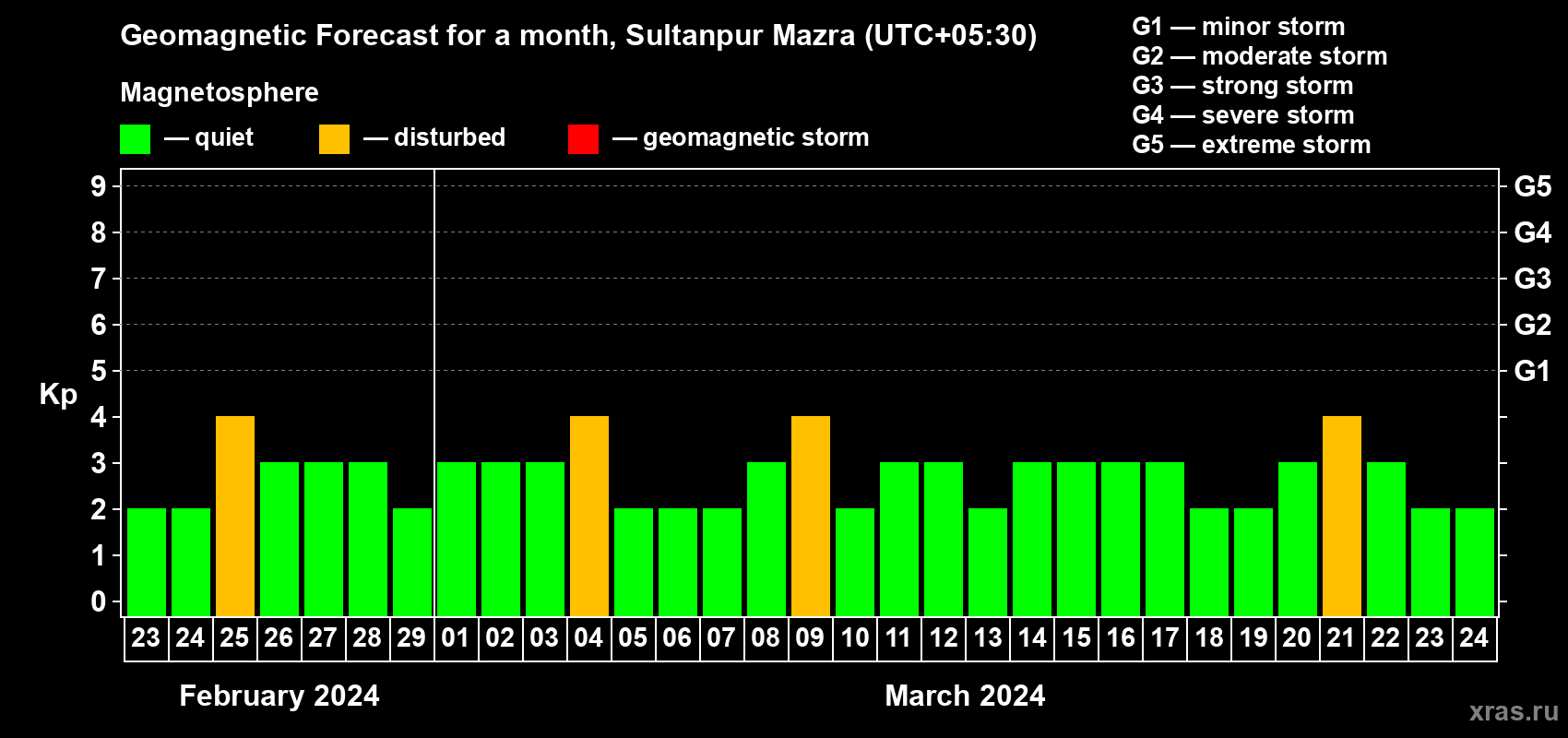 Geomagnetic storm forecast in Sultanpur Mazra for Feb 23, 2024