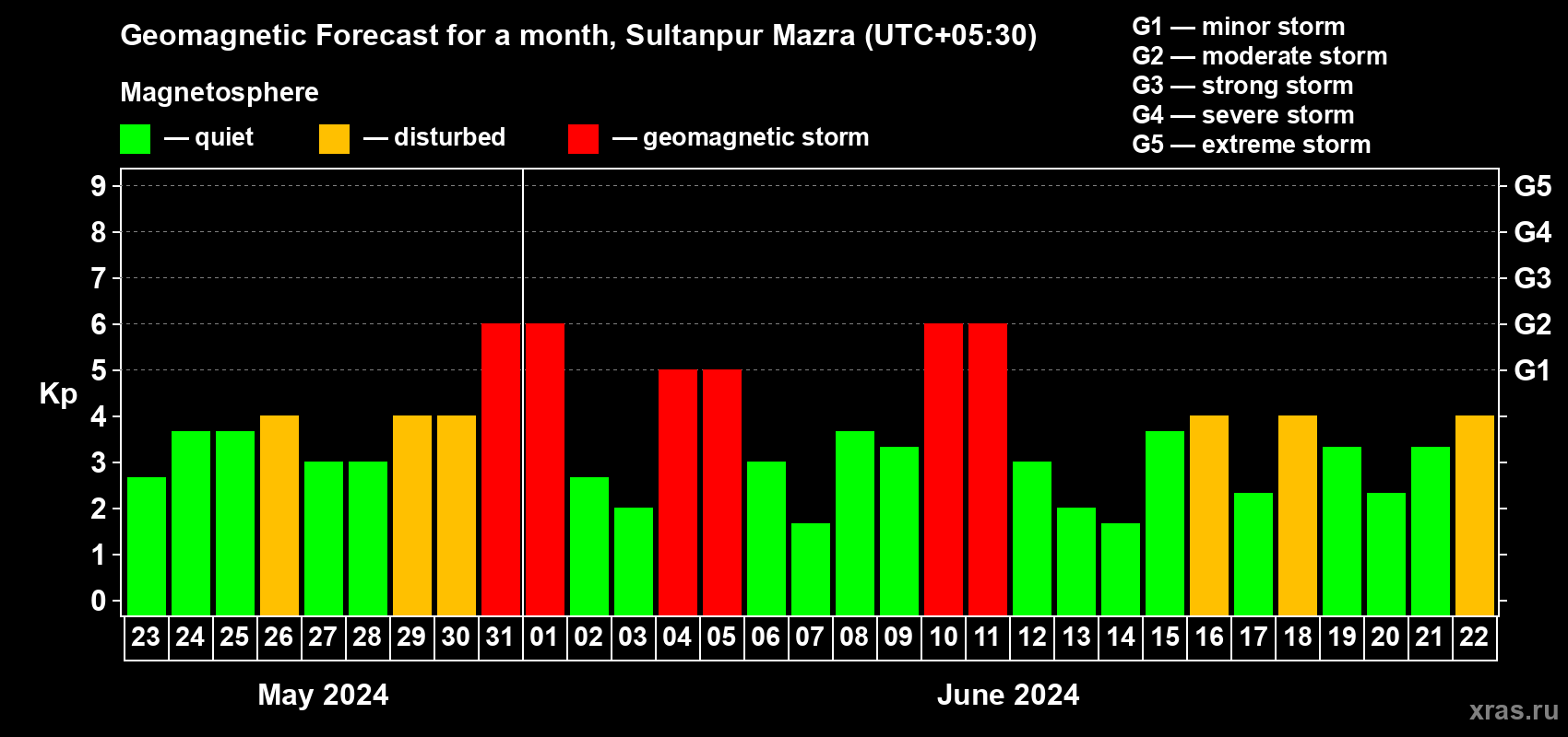 Geomagnetic storm forecast in Sultanpur Mazra for May 23, 2024
