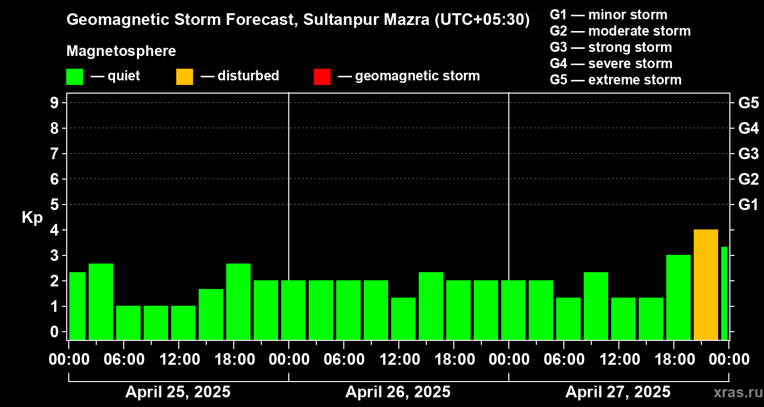 Geomagnetic storm forecast in Sultanpur Mazra for Apr 25, 2025