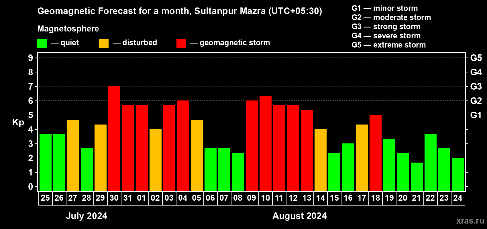 Geomagnetic storm forecast in Sultanpur Mazra for Jul 25, 2024